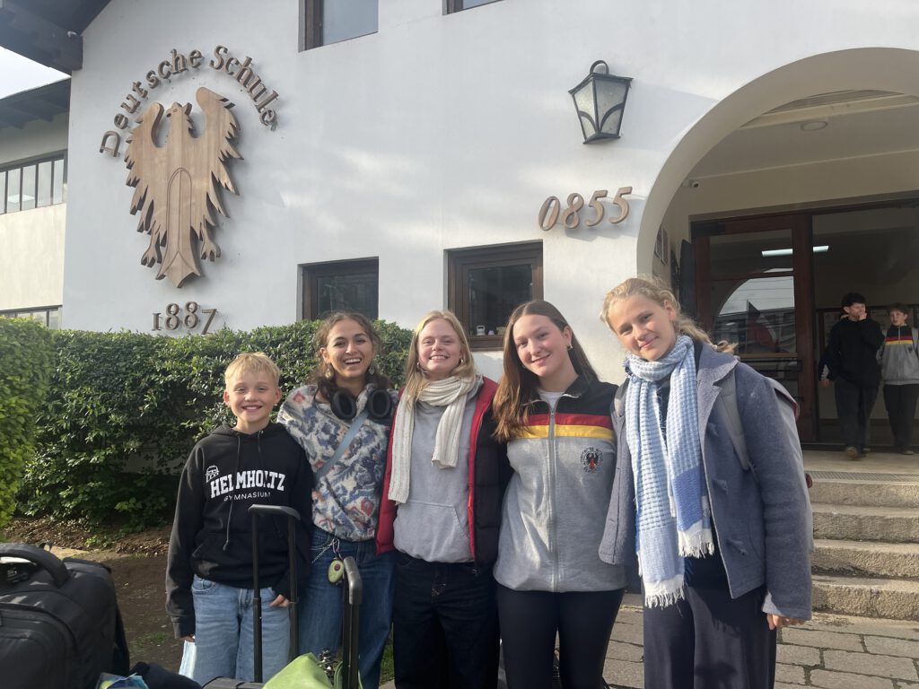 Danach blieb uns Zeit zum Verschnaufen. Manche spielten Wizard oder Skat, während andere Insta Videos für unseren umwerfenden Insta Account schnitten (den ihr unbedingt mal anschauen solltet!). Um 13:30 Uhr (DE 18:30 Uhr) war dann endlich unser Flug in die Hauptstadt Santiago. Schon nach 1h kamen wir dort für den Umstieg nach Temuco an. Hier blieb uns weniger Zeit zum Rumalbern, da um 15:30 Uhr schon der nächste Flug folgte. Recht flink und gegen späten Nachmittag waren wir dann schon am Flughafen in Temuco angekommen . Mit dem Bus ging’s für uns dann bis zur Deutschen Schule, in der uns in den nächsten Tagen auch ein paar Workshops erwarten werden. Voller Vorfreude fabulierten wir schon darüber, wer zusammen in eine Gastfamilie kommen würde. Nach einer sehr freundlichen und positiven Aufnahme an der Schule, ging’s für jeden in seine jeweilige Familie. Eifrig schickten wir uns in der Kammerchor Gruppe Selfies und berichteten wie es uns geht. Der Abend hatte so dann einen schönen Ausklang.
