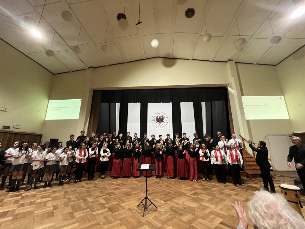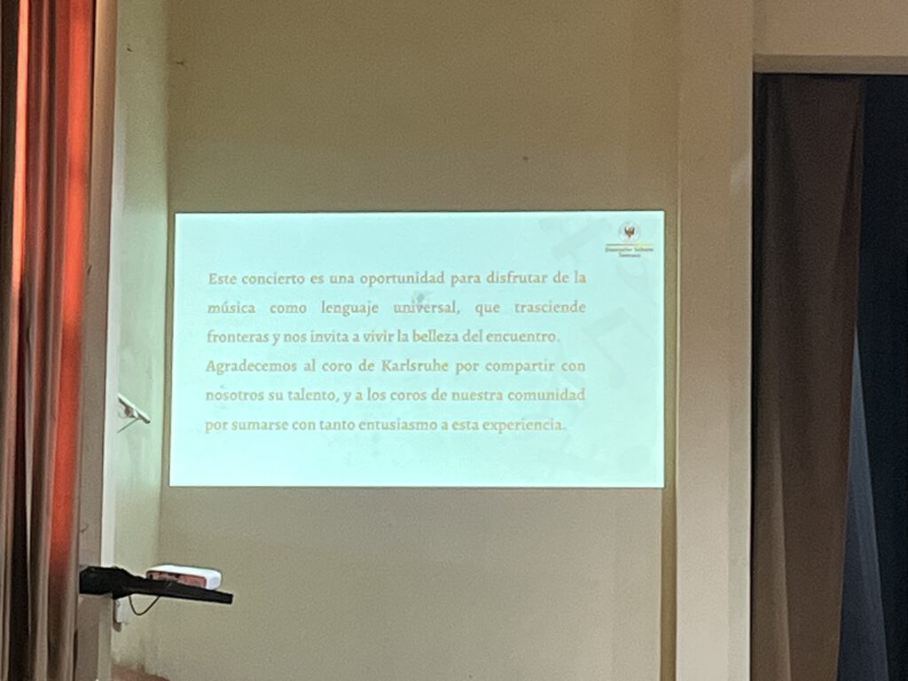 Wir sind beseelt und gerührt von all der Liebe und Mühe, die uns hier entgegen gebracht wird. Wie die Schulleiterin betonte, war es ein Abend der Verbindungen durch Musik, die über die nationalen Grenzen hinausgeht. Für uns war und ist es eine große Ehre und ein Geschenk, diese Begegnungen erleben zu dürfen und für all die lieben Menschen singen zu dürfen.