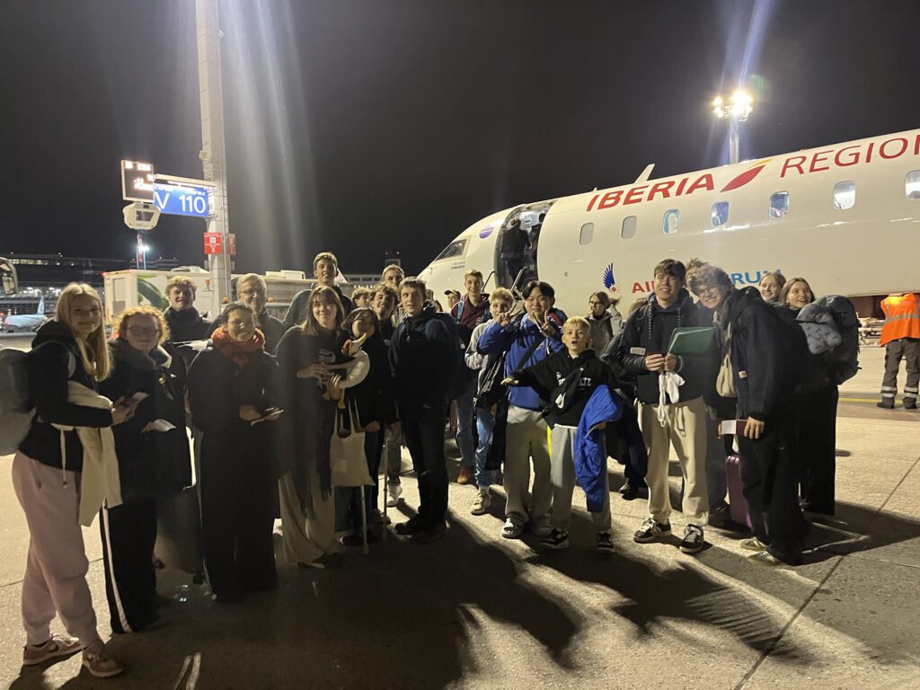 Nach langem Bangen um freie Sitzplätze bei massiv überbuchtem Flug, haben wir nun tatsächlich ALLE eingecheckt!!! Erleichtert fahren gerade alle mit dem Bus zum Flieger. Große Freude 🙂